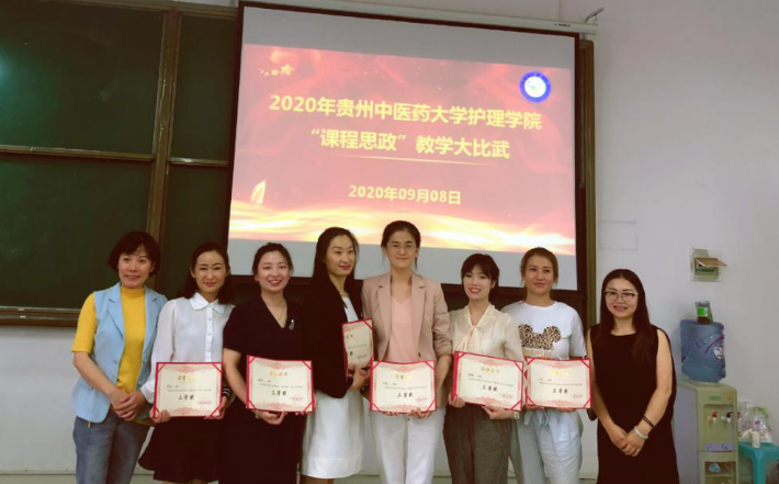 为深入学习贯彻习近平总书记关于教育的重要论述、全国教育大会精神,落实立德树人根本任务,把思想政治教育贯穿人才培养体系,全面推进高校课程思政建设,充分发挥课堂教学育人主渠道、主阵地的作用,提高高校人才培养质量,培养担当民族复兴大任的时代新人。在第36个教师节来临之际,我院于9月8日在72886必赢欢迎光临花溪校区河间楼成功举办首届“课程思政教学大比武决赛”。本次比赛邀请72886必赢欢迎光临教务处副处长冯晓燕教授、72886必赢欢迎光临党委副书记顾鸿教授、周谊霞教授及72886必赢欢迎光临第一学生党支部书记郑佳文老师担任评委。72886必赢欢迎光临党委书记石国凤教授、副院长肖丽娜教授出席比赛,来自各教研室的教师代表近60人观摩了比赛。