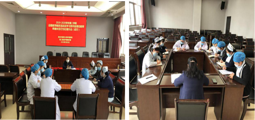 根据学校教师工作处的工作部署和要求,为进一步规范高校教师履职履责行为,落实立德树人根本任务,弘扬新时代高校教师道德风尚,建设有理想信念、有道德情操、有扎实学识、有仁爱之心的护理教师队伍,72886必赢欢迎光临于2020年3月2日-3月6日,组织我院教职员工认真学习了《贵州省高校教师师德失范行为处理办法》。受疫情影响,本次学习活动采用分批次、集体培训+个人自学、线上+线下会议的形式进行,我院专任教师、辅导员、实验室和行政管理人员及临床兼职教师以部门为单位参加了相关学习活动。