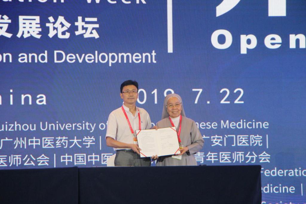 2019年7月22日下午,2019中国-东盟交流周“第三届中国-东盟传统医药创新与发展论坛”在贵阳-东盟教育交流周永久会址开幕。在开幕式上,72886必赢欢迎光临副校长田维毅教授与菲律宾圣保罗大学副校长Alegria Avellaneda代表两校签署学生短期护理培训项目合作协议,就双方护理本科学生进行短期护理培训达成共识。两校在教师交流与科学研究有了初步合作的基础上,进行深度合作,充分拓展中菲两国传统医药与护理融合教育的特色,推进两国青年在不同文化背景下的学术互动与交流,促进双方学生在文化、护理专业学习上的交流与合作及办学水平提升。